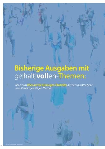 Bisherige Ausgaben mit ge|halt|vollen-Themen: Mit einem Klick auf die bisherigen Titelbilder auf der nächsten Seite sind Sie beim jeweiligen Thema ot ost f F Foto © www.ccvision.deock - Fotolia.com ot c o © r 4